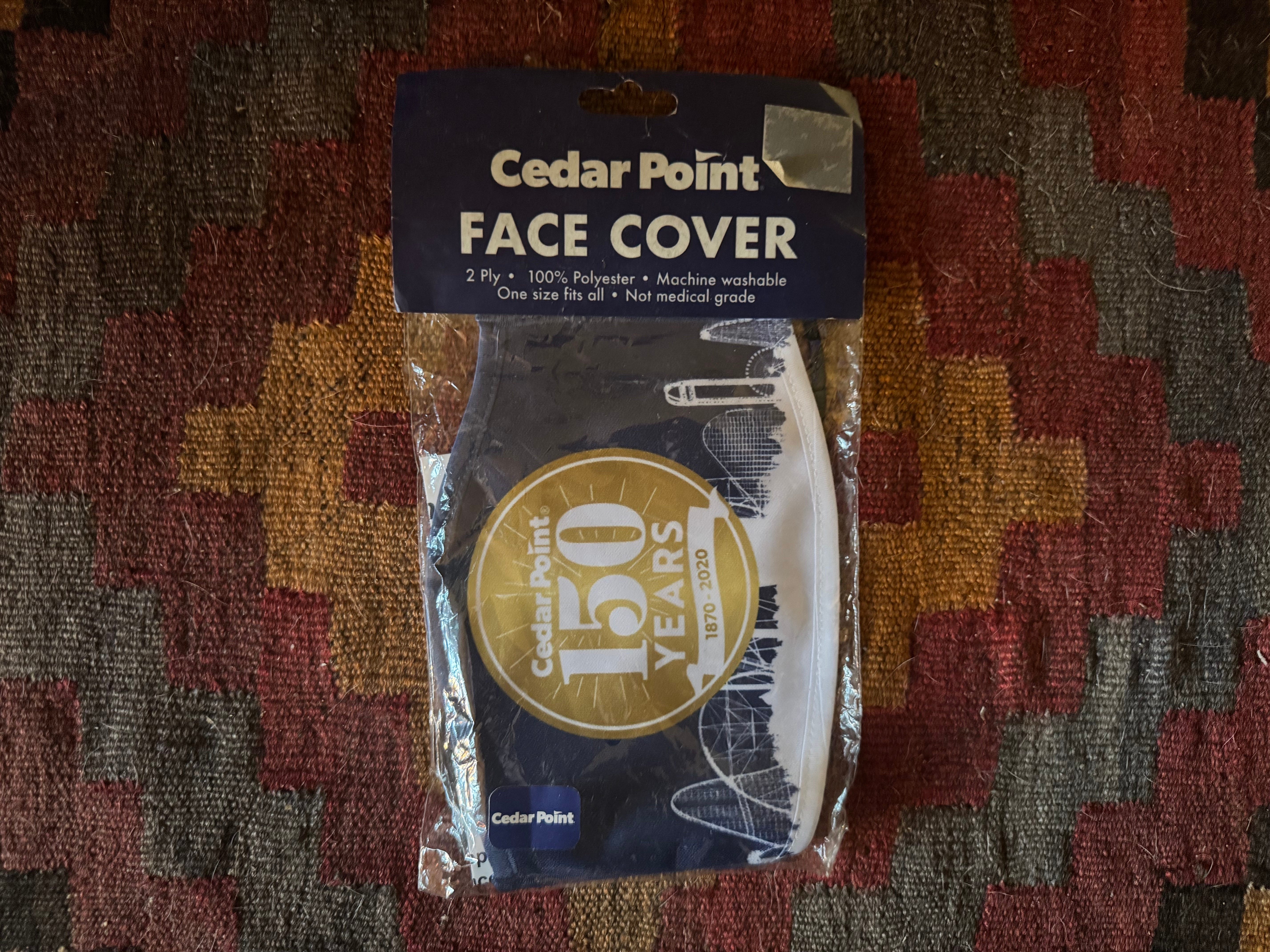 In the year that followed, as more parks opened up and attendance started to increase, I developed an appreciation for the merchandise commemorating this awkward time— a device for opening bathroom doors without touching them, branded with a cheap Six Flags sticker, or a face mask commemorating the 150th Anniversary of Cedar Point on Lake Erie.